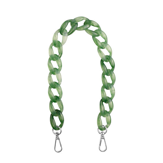 Hvisk Chain Handle Tortoise GreenDe Hvisk Chain Handle is een opvallende en trendy verschijning. De Chain Handle geeft een nieuwe look aan je tas. De strap is niet verstelbaar en alleen over de schouder te dragen (niet crossbody). Houdt er rekening mee dat de strap kort is. De Hvisk Chain Handle is gemaakt van 100% Resin en is afgewerkt met zilveren hardware. De Hvisk Chain Handle gemaakt van 100% hars en bevat geen dierlijke derivaten.Hvisk draagt het PETA-approved keurmerk. Dit betekent dat zij volledig vegan zijn verklaard door de dierenwelzijnsorganisatie PETA. Specificaties Hvisk Chain Handle Tortoise GreenAfmeting: L 48 x B 3 cmMateriaal: 100% Resin (hars)Kleur: Tortoise GreenArtikelnummer: H1398-094EAN-nummer: 5714196035528Fabrieksgarantie: 2 jaarKleding- Merk: Hvisk- Maat: L 48 x B 3 cm- Kleur: Tortoise Green- Soort: Accessoire- Keurmerk: Peta-approved- Herkomst: Denemarken