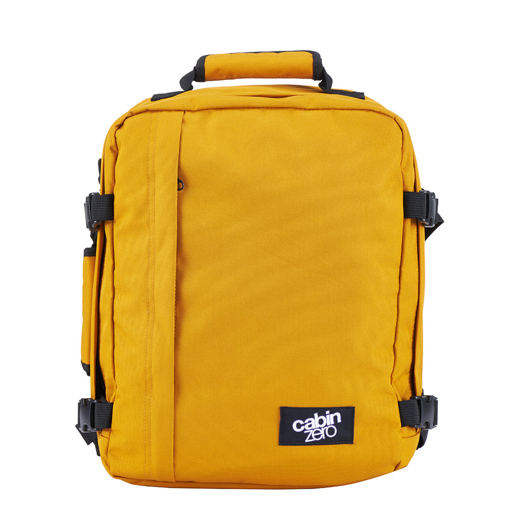 Cabin Bag uit de Classic Mini serie van CabinZero. De Classic Mini is de kleine versie van de Classic. Multifunctionele handbagage rugtas met tevens een stevig top,-en zijhandvat om de tas mee te kunnen nemen. De Classic serie is gemaakt van stevig waterdicht polyester met ritsen die overlappen. De tas is geschikt als handbagage, voldoet aan de IATA norm en is zeer licht.