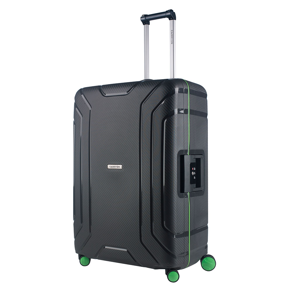 Grote maat spinner uit de Steward serie van CarryOn. Deze stevige koffer heeft een ruim hoofdcompartiment met inpakriemen en afsluitbaar ritsvak met intern extra ritsvakjes. De robuuste koffer is voorzien van een stevige en veilige driepuntsluiting met TSA slot voor zorgeloos reizen van en naar de VS. Binnenin is de koffer volledig gevoerd en voorzien van extra opbergvakken. Met 4 soepele dubbele spinning wielen en verstelbare trekstang zeer gemakkelijk mee te nemen. Dankzij het vierkante design benut je volledig alle ruimte in de koffer en is de literinhoud maximaal.