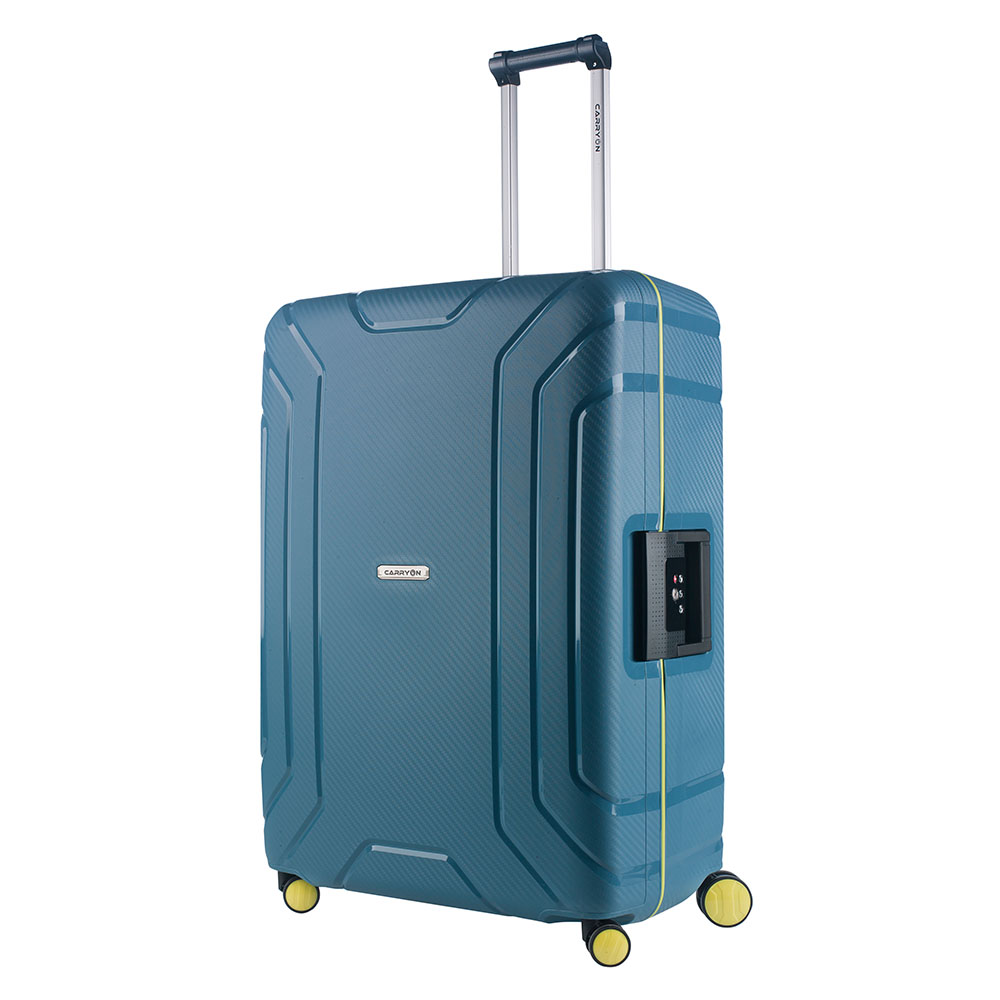 Grote maat spinner uit de Steward serie van CarryOn. Deze stevige koffer heeft een ruim hoofdcompartiment met inpakriemen en afsluitbaar ritsvak met intern extra ritsvakjes. De robuuste koffer is voorzien van een stevige en veilige driepuntsluiting met TSA slot voor zorgeloos reizen van en naar de VS. Binnenin is de koffer volledig gevoerd en voorzien van extra opbergvakken. Met 4 soepele dubbele spinning wielen en verstelbare trekstang zeer gemakkelijk mee te nemen. Dankzij het vierkante design benut je volledig alle ruimte in de koffer en is de literinhoud maximaal.