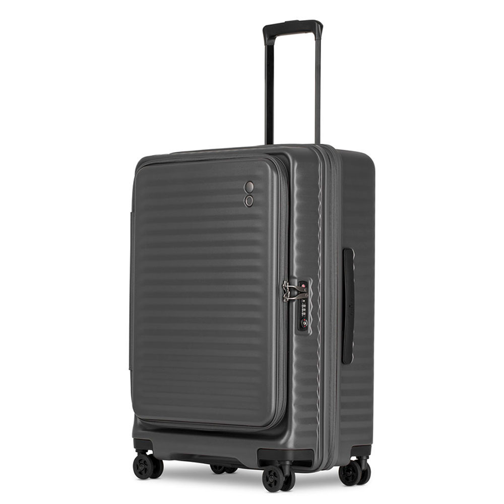 Middelgrote maat spinner uit de Celestra serie van Echolac. De Celestra serie van Echolac bestaat uit koffers die vervaardigd zijn uit 100% polycarbonaat. Hierdoor zijn de koffers erg sterk en vrijwel onverwoestbaar. Het elegante design maakt deze Celestra koffer helemaal af. Het unieke aspect van de Celestra serie is de opening aan de voorkant. Door deze open te ritsen kun je in de koffer en deze sluit middels een TSA-slot aan de zijkant van de koffer. De koffer heeft in het midden een rits waarmee de koffer uitbreidbaar is, deze kun je niet gebruiken voor openen of sluiten. Door deze uitbreidingsrits krijgt je koffer 4 cm extra diepte en meer inhoud in liters. Dankzij de vier dubbele stille wielen is de koffer vrijwel geluidloos. Het ruime hoofdcompartiment is voorzien van gekruiste inpakriemen, een uitneembaar tussenschot en een klein ritsvak. In de klep bevinden zich twee extra ritsvakken.