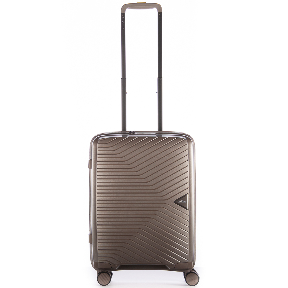 Handbagage spinner uit de Gotthard serie van March. De Gotthard serie van March is gemaakt van flexibel en supersterke polypropyleen. De manier waarop March de techniek van fabricatie heeft gemixt met het materiaal (high impact polypropylene) zorgt er eigenlijk voor dat schaal van de koffer onbreekbaar is. De koffer is supersterk maar licht van gewicht, soepel in de schaal en krasbestendig door het ontwerp in de zand textuur van de schaal. Voorzien van vier dubbele soepele wielen met details in de kleur van de schaal. Het TSA-combinatieslot zit prachtig verzonken verwerkt aan de bovenzijde waardoor de koffer altijd slank in design oogt. Het interieur is voorzien van gekruiste inpakriemen aan de ene kant en aan de andere kant extra ritsvakken. De dubbele trekstang heeft details in dezelfde kleur van de koffer en is in hoogte verstelbaar.