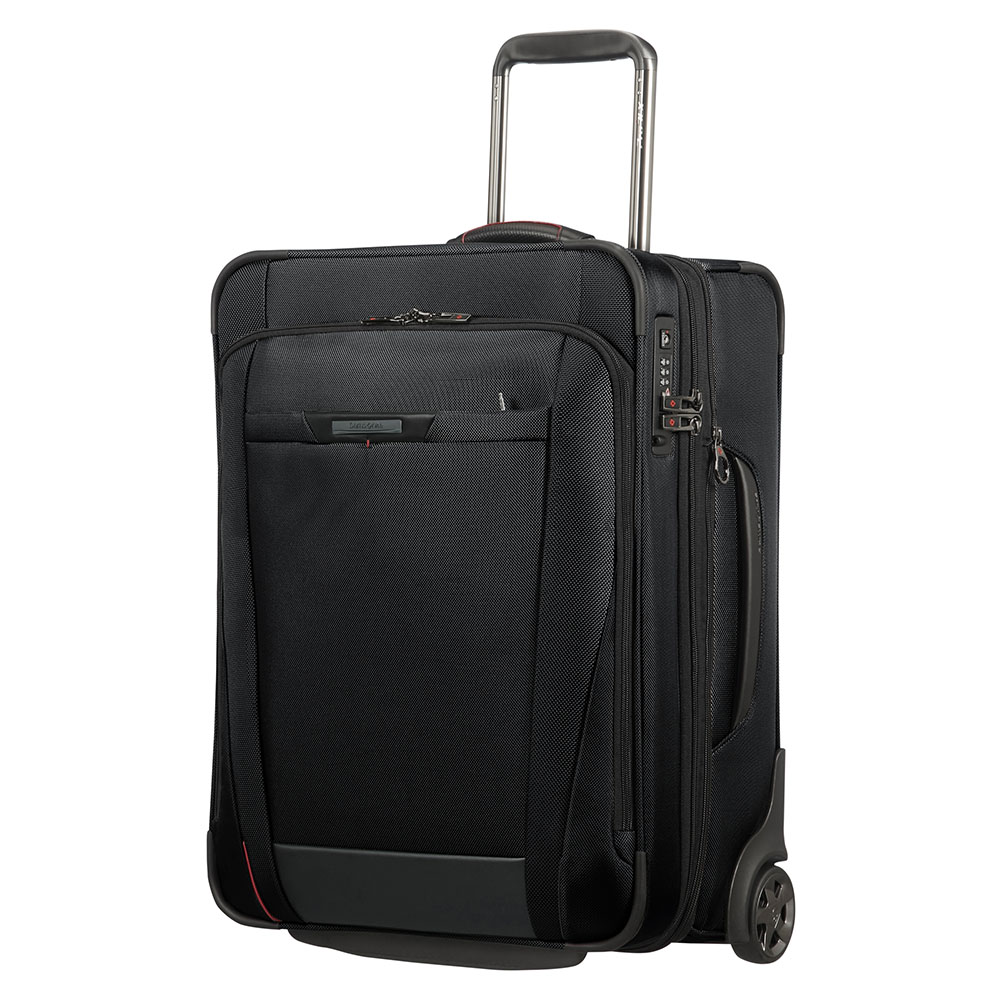 Handbagage trolley uit de Pro-DLX 5 serie van Samsonite. De nieuwste generatie van de Samsonite Business bestseller heeft een nieuwe look gekregen om te blijven voldoen aan alle wensen van wie vaak op zakenreis gaat. De collectie is nu lichter, uitgerust met nog meer functies dan zijn voorganger en voorzien van een handige organisatie binnenin. Het vernieuwde design met groter voorvak en rode, verticale accenten maakt Pro-DLX 5 functioneler en opvallender dan ooit.