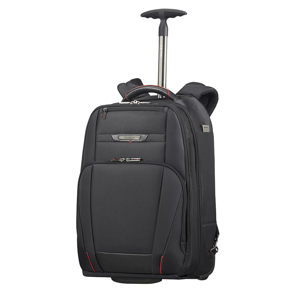 Laptoprugtas met wielen uit de Pro-DLX 5 serie van Samsonite. De nieuwste generatie van de Samsonite Business bestseller heeft een nieuwe look gekregen om te blijven voldoen aan alle wensen van wie vaak op zakenreis gaat. De collectie is nu lichter, uitgerust met nog meer functies dan zijn voorganger en voorzien van een handige organisatie binnenin. Het vernieuwde design met groter voorvak en rode, verticale accenten maakt Pro-DLX 5 functioneler en opvallender dan ooit.