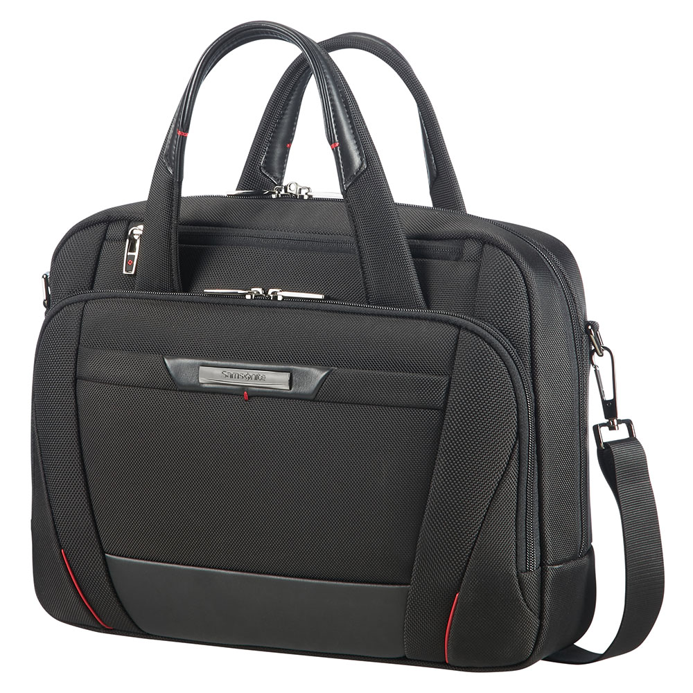 Laptoptas uit de Pro-DLX 5 serie van Samsonite. De nieuwste generatie van de Samsonite Business bestseller heeft een nieuwe look gekregen om te blijven voldoen aan alle wensen van wie vaak op zakenreis gaat. De collectie is nu lichter, uitgerust met nog meer functies dan zijn voorganger en voorzien van een handige organisatie binnenin. Het vernieuwde design met groter voorvak en rode, verticale accenten maakt Pro-DLX 5 functioneler en opvallender dan ooit.