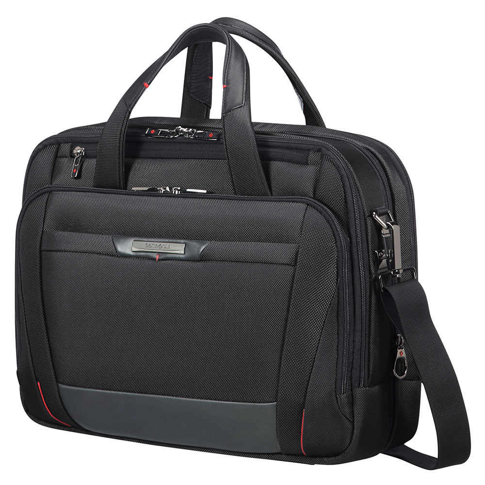 Laptoptas uit de Pro-DLX 5 serie van Samsonite. De nieuwste generatie van de Samsonite Business bestseller heeft een nieuwe look gekregen om te blijven voldoen aan alle wensen van wie vaak op zakenreis gaat. De collectie is nu lichter, uitgerust met nog meer functies dan zijn voorganger en voorzien van een handige organisatie binnenin. Het vernieuwde design met groter voorvak en rode, verticale accenten maakt Pro-DLX 5 functioneler en opvallender dan ooit.