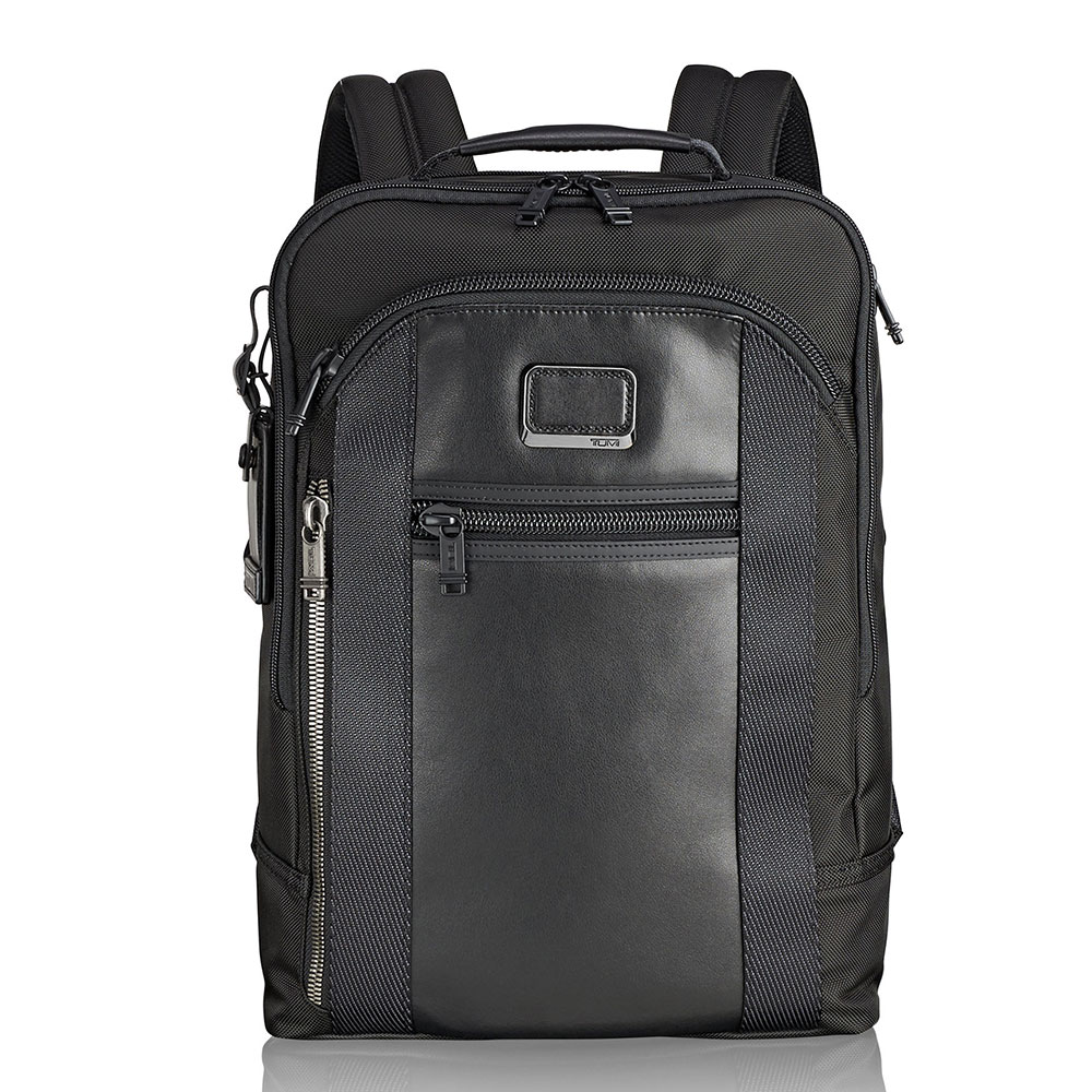 – Gevoerde, verstelbare rugzakriemen- Luchtdoorlatend verstevigd rugpaneel- Stevig handvat afgewerkt met leer- Ruim georganiseerde hoofdcompartimenten- Geschikt voor A4 materiaal- Gevoerd 16″ laptop (42×26,5 cm) en tablet vak- Meerdere voorvakken met ritssluiting- Afgewerkt met lederen details- Smart-sleeve- Voorzien van Tumi-Tracer- Onderkant met leer verstevigd