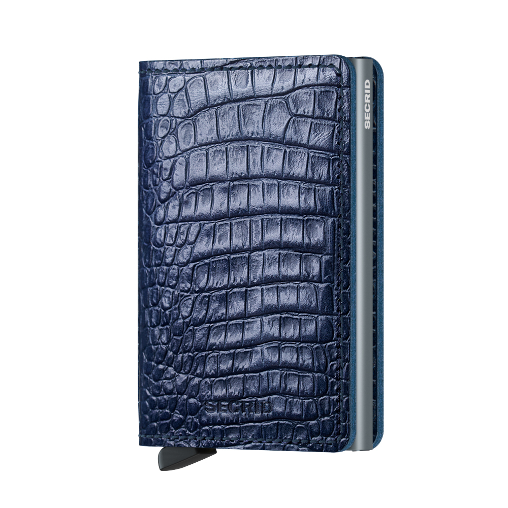 – Vervaardigd uit echt Europees leer- Nile; runderleer van koeienhuiden met een krokodillenprint- Protector gemaakt van massief aluminium- Formaat slechts 16 mm dik; slanker dan de Secrid Miniwallet- Ruimte voor 6 vlakke kaarten of 4 kaarten met verdikte letters (bepaalde creditcards)- Extra ruimte voor briefgeld, visitekaartjes, garantiebonnen of 6 extra passen – Geschikt voor enkele munten- Slank design; geen sluiting- Beschermt kaarten tegen buigen, slijten, breken en ongewenst uitlezen (skimmen)- Met één druk op de knop schuiven de kaarten trapsgewijs naar buiten- Ontwerp bekroond met een Red Dot Design Award