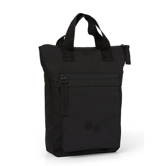 Pinqponq Tak Rooted BlackDe Pinqponq Tak is een compacte en handige rugzak. Het model Tak is een van de kleinste rugzakken van Pinqponq. De tas sluit door middel van een rits aan de bovenzijde. Aan de binnenzijde van de Pinqponq Tak bevindt zich één groot hoofd compartiment met 15 inch laptopvak en één ritsvak voor je telefoon en portemonnee. De afmeting van het laptopvak is 24 bij 35 cm. Deze stijlvolle rugzak heeft verstelbare schouderriemen voor meer comfort. De rugzak is makkelijk om te toveren naar schoudertas. Dit kun je doen door de bedekte drukknopen op schouderhoogte los te maken. Daarnaast is de rugzak ook in de hand te dragen. De tas heeft een inhoud van 11 liter en een gevoerd bodemdeel voor meer stabiliteit. Aan de voorzijde van de tas bevindt zich een ritsvak, hier kun je gemakkelijk kleine eigendommen in opbergen. Dit voorvak is met elastiek aan de rugzak gemaakt. Hierdoor kun je een jasje of vestje tussen het voorvak en der rugzak opbergen. De Pinqponq Tak is gemaakt van polyester vervaardigd uit PET-flessen. Er worden 18,3 PET-flessen verwerkt in de Pinqponq Tak. Daarnaast wordt het materiaal van de Pinqponq Tak vervaardigd uit PFC-vrije stoffen. Pinqponq heeft hiervoor gekozen, omdat PFC is niet afbreekbaar, milieubelastend en schadelijk voor je gezondheid is.Pinqponq rugzakken zijn PETA-approved vegan. Er worden geen dieren geschaad of gedood tijdens het productieproces van een Pinqponq rugzak. Specificaties Pinqponq Tak Rooted BlackAfmeting: H 40 x B 34 x D 10 cmMateriaal: Polyester (100% PET-flessen), PFC-vrije stoffenKleur: Rooted BlackArtikelnummer: PPC-TAK-001-801CEAN-nummer: 4057081063215Fabrieksgarantie: 1 jaarKleding- Merk: Pinqponq- Maat: H 40 x B 34 x D 10 cm- Kleur: Rooted Black- Soort: Rugzak- Keurmerk: Peta-approved- Herkomst: Duitsland