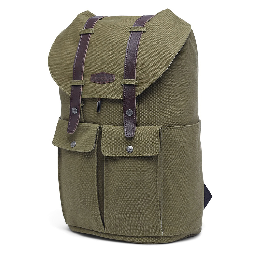 – Ruim hoofdcompartiment- Gemaakt van extra stevig canvas, met een waterafstotende coating.- Veilig laptop/tabletvak op de rugzijde met ritssluiting en een groter laptopvak binnenin de tas. Geschikt voor de meeste 15” laptops. (Laptopvak met ritssluiting: +/- lengte: 37,5cm, breedte: 26cm, hoogte: 4cm. Laptopvak binnenin: +/- lengte: 40cm, breedte: 26cm, hoogte: 4cm)- Twee zijvakken aan de buitenkant, waarvan één met een ritssluiting.- Twee grote voorvakken inclusief organisers. – Twee extra vakjes binnenin met handige klittenbandsluiting. – Vegan leren TruBlue & Pioneer logo en elegante vegan leren bandjes of stylish geweven bandjes.- Dankzij de lichte contrastrijke binnenvoering vind je gemakkelijk je spullen in de tas.- Handig trekkoordsluiting voor snelle toegang – Gewatteerde en verstelbare schouderbanden voor extra comfort.- Stoere metalen drukknopen- Comfortabel breed handvat bovenop de rugzak.- Canadese details op de drukknopen en label.- Ideale rugtas voor dagelijks gebruik voor studie, werk, festivals, sporten, of reizen.