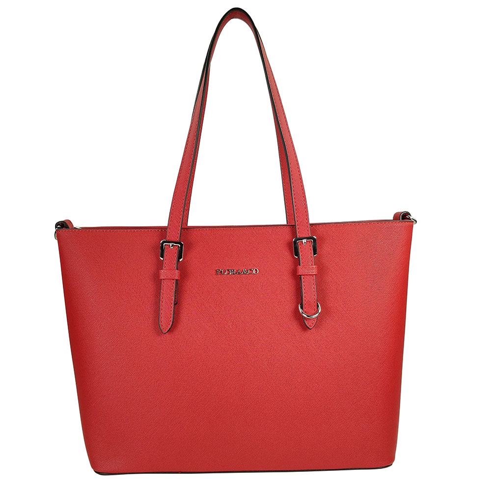 Schoudertas uit de Shoulder Bags serie van Flora & Co. De tas heeft een ruim hoofdcompartiment met interne vakverdeling waardoor je al je dagelijkse spulletje overzichtelijk kunt opbergen. Geschikt voor A4 materiaal, wat de tas zeer geschikt maakt voor mee naar je werk of school. De schoudertas bevat naast ruime handvatten ook een afneembare schouderriem, waardoor de tas ook over de schouder draagbaar is. Met noppen onderop ter bescherming en stevigheid van de schoudertas.