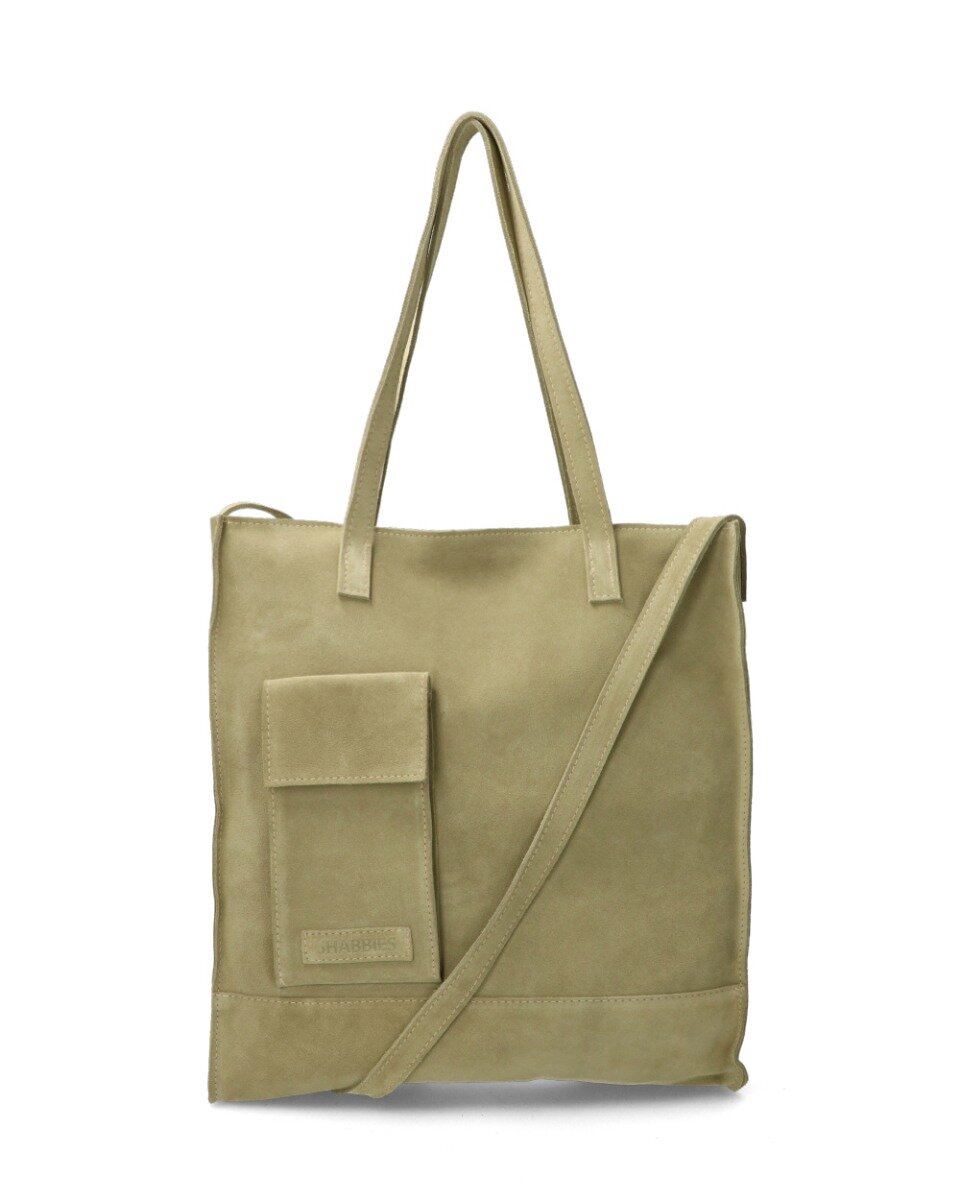 Functioneel en prachtig? In de collectie van Shabbies Amsterdam hebben we een shopper (283020017) die aan die eigenschappen voldoet. De tas is gemaakt van hoogwaardig suède en heeft een prachtig groene kleur. Aan de voorkant van de tas zit een klein vakje waar je een make-up, je sleutels en een pasje in kwijt kan. Super handig wanneer je snel en gemakkelijk deze spullen bij de hand wilt hebben. De shopper is zowel als handtas als om de schouder te dragen, wat heteen functionele tas maakt. Ideaal voor werk, maar zeker ook voor privé! Het formaat van de tas is 37X33X6 cm.Wij adviseren je om deze shopper regelmatig te behandelen met water- en vuilafstotende spray.