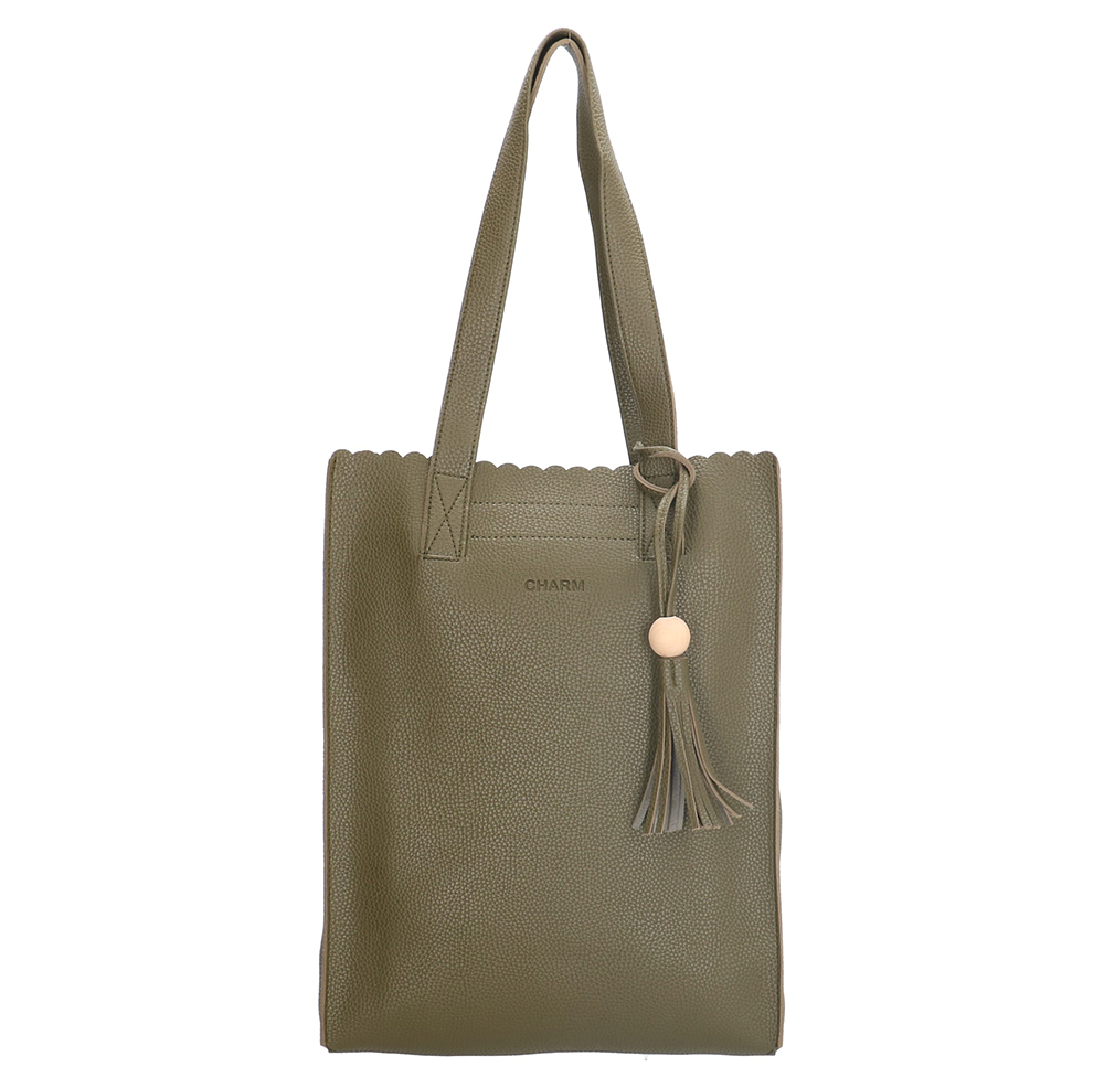 Shopper uit de Covent Garden serie van Charm London. Deze diep formaat shopper met imitatie leren uitstraling is gemaakt van stevig polyester. Geschikt voor A4 materiaal en met een volledige ritssluiting. Om al je spullen veilig en overzichtelijk op te kunnen bergen zitten intern een extra rits- en steelvakje. Dit maakt de schoudertas zeer geschikt voor al je dagelijkse spullen.