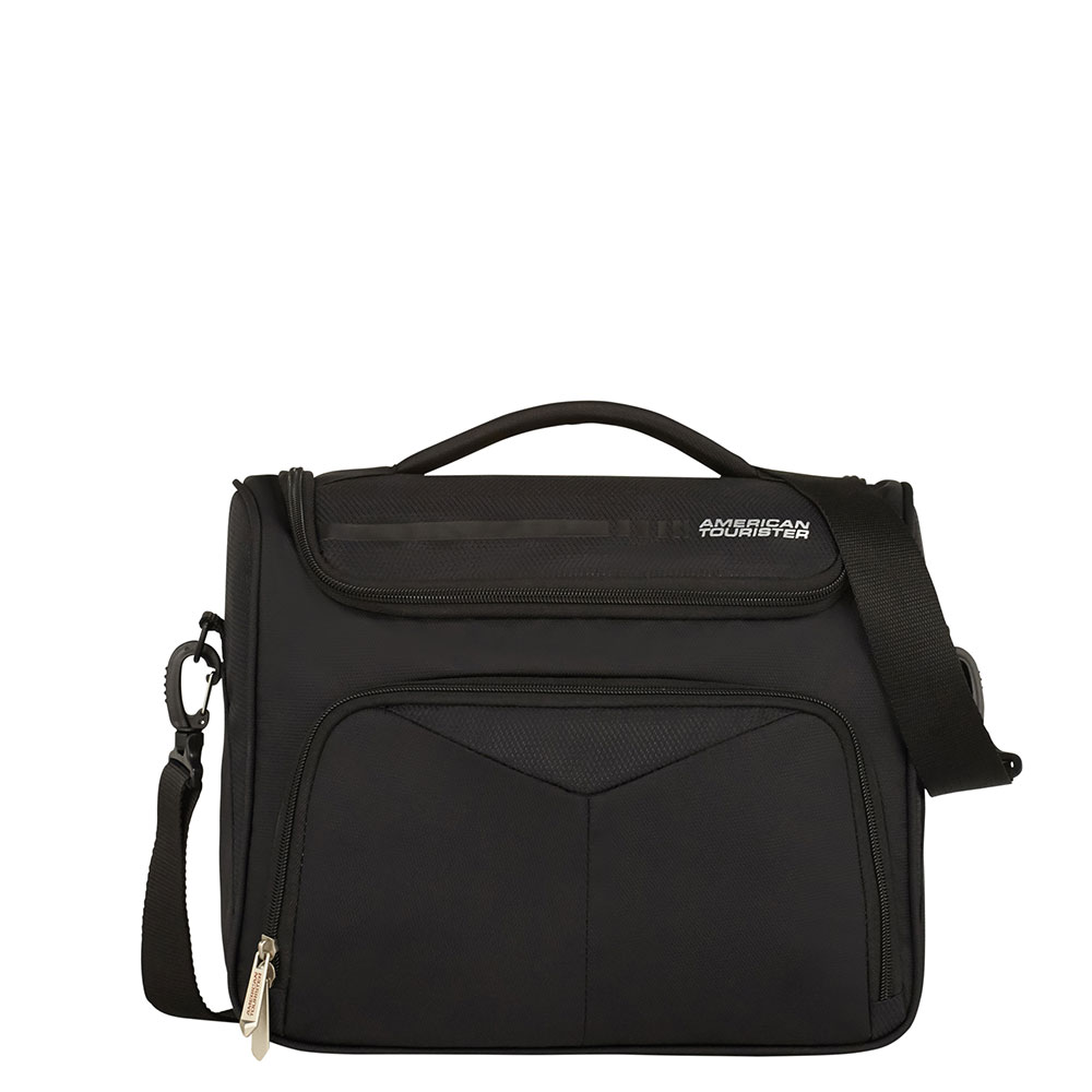 Beauty Case uit de Summerfunk serie van American Tourister (made by Samsonite). De Summerfunk is kenmerkend door zijn sterke polyestermix, het gestroomlijnde, moderne design en de vele handige opberg functies. Deze beauty case heeft een u-vorm opening en interne vakverdeling. Intern gevoerd en voorzien van meerdere steekvakjes. Praktisch mee te nemen met verstelbare schouderriem, stevig handvat en smart sleeve waarmee je de beauty case aan een trolley kan bevestigen.